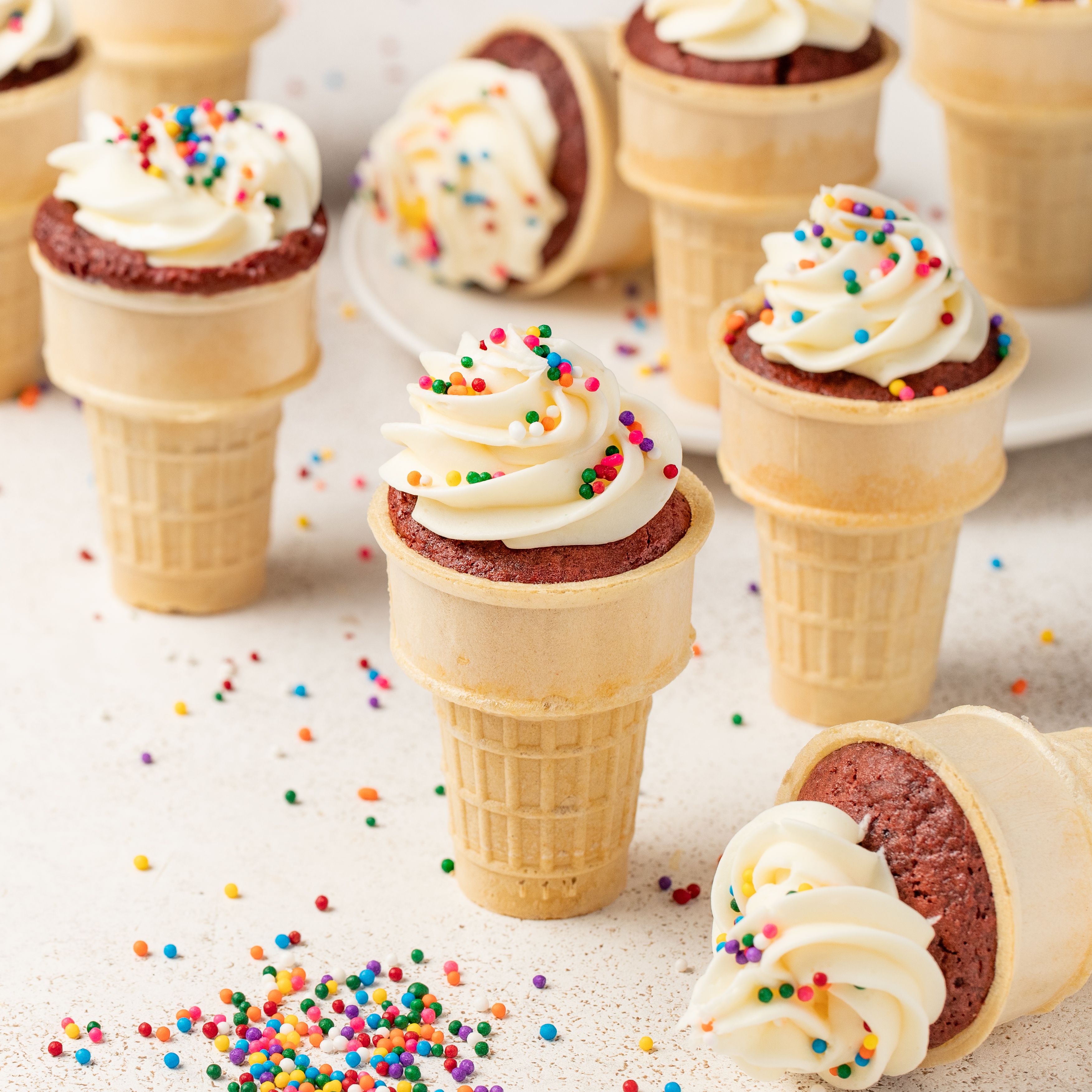 Red Velvet "Cake Cones" with Cream Cheese Frosting