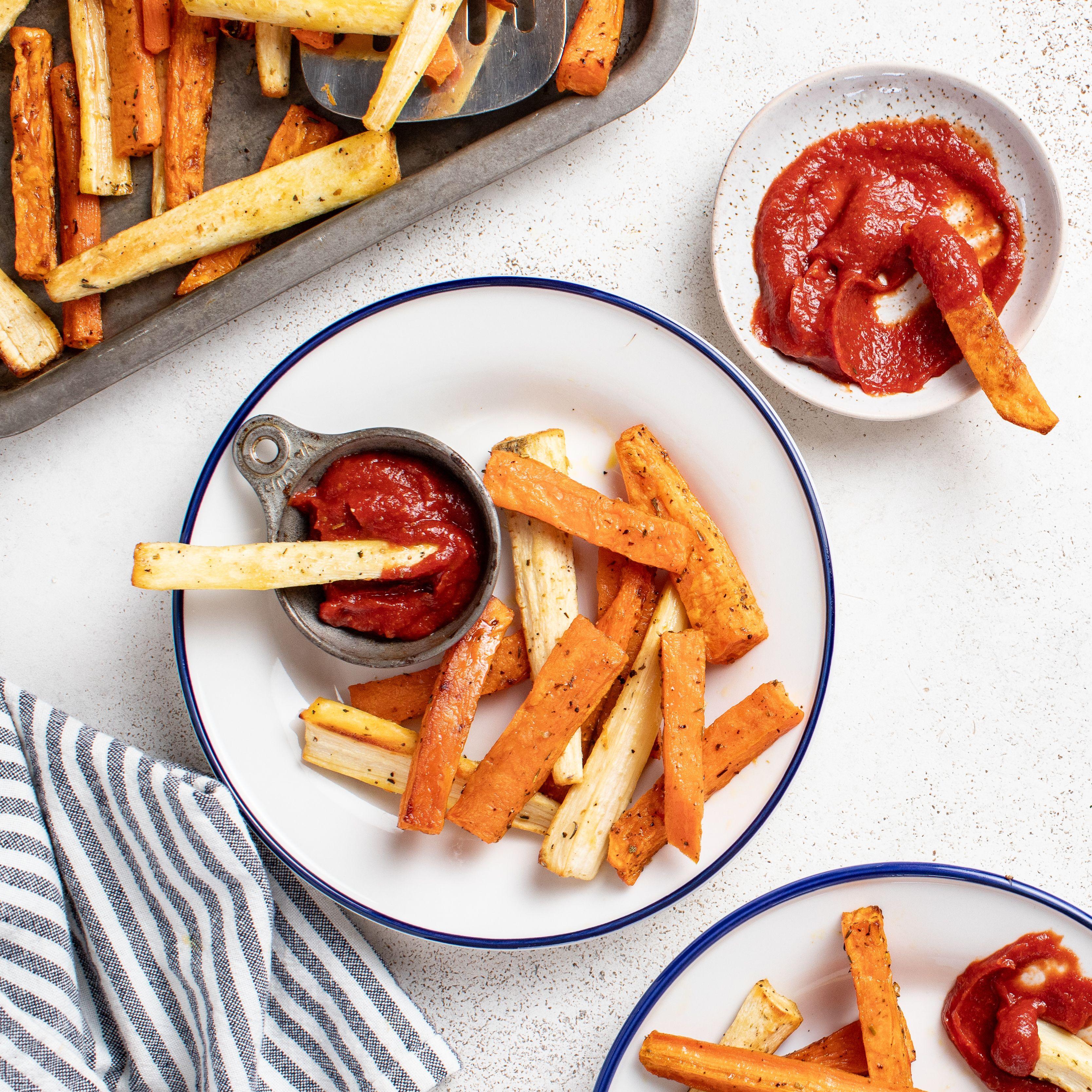 Sweet Potato, Carrot & Parsnip "Oven Fries" with Homemade Ketchup